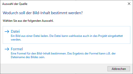 3. Wählen Sie aus, ob das Bild aus einer Datei geladen oder der Inhalt über eine Formel/Variable bestimmt wird.
