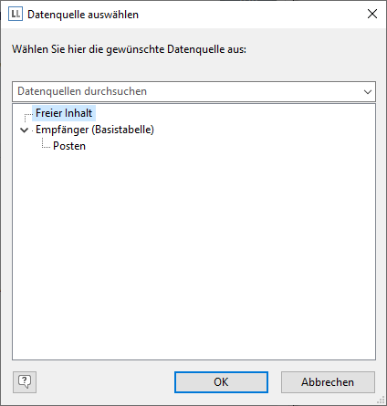 3. Im folgenden Dialog wählen Sie als Datenquelle "freier Inhalt".
