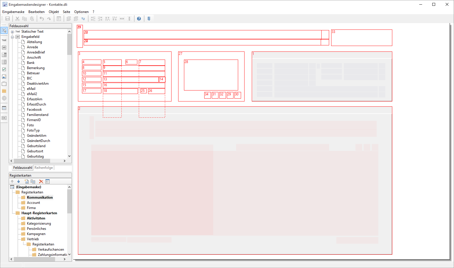 Zudem wird mit der Darstellungsreihenfolge der initielle Fokus festgelegt, wenn ein Datensatz neu angelegt wird.