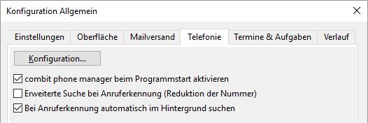 Wählen Sie Datei > Konto > Allgemein > Telefonie um die Telefonie zu konfigurieren.