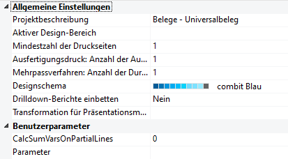▪ Die Projekteigenschaften stehen auch als Felder zur Verfügung und können über die Funktion ProjectParameter$() ausgewertet werden.