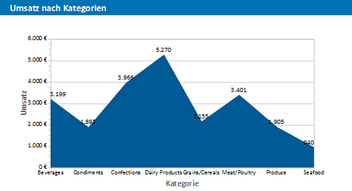 Als Alternative zum gestaffelten Liniendiagramm bietet sich ein Flächendiagramm an. Hier lassen sich Verhältnisse schneller ablesen, da die Flächen zwischen den Linien eingefärbt sind.