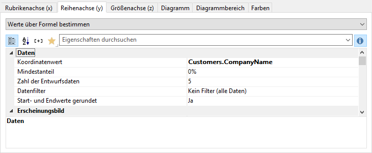 4. Bestimmen Sie den Koordinatenwert der Reihenachse, d. h. den Wert der y-Achse. Wählen Sie über den Formel-Assistenten das Feld "Customers.CompanyName".