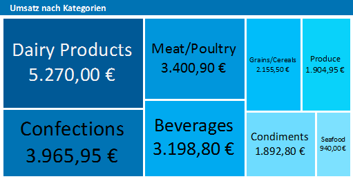 Eine Treemap (Baumkarte) dient der Visualisierung hierarchischer Strukturen durch die Darstellung ineinander verschachtelter Rechtecke. Damit können Größenverhältnisse anschaulich dargestellt werden, indem die Fläche der Rechtecke proportional zur Größe des Werts gewählt wird.