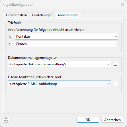 ▪ Im Bereich Dokumentenmanagementsystem kann ein DMS ausgewählt werden um Dokumente über ein DMS zu verwalten. Weitere Informationen finden Sie unter DokumentenverwaltungDokumentenverwaltung im Kapitel Konfiguration Ansichten. Unterstützte DMS siehe Anbindung an Dokumentenmanagementsysteme (DMS) in Kapitel Voraussetzungen und Installation.