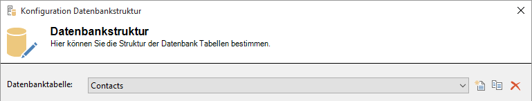▪ Wählen Sie neben dem Eingabefeld Datenbanktabelle die Schaltfläche "Neu" um eine neue Datenbanktabelle auf dem Datenbankserver anzulegen. Die Tabelle wird dabei dem dbo-Schema zugeordnet (z. B. dbo.Contacts).