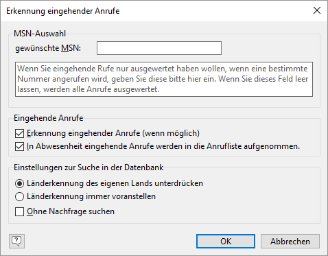 ▪ Gewünschte MSN: Wenn Sie eingehende Rufe nur ausgewertet haben möchten, wenn diese Nummer angerufen wird.