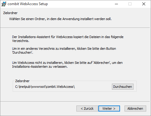 Standardpfad: C:\inetpub\wwwroot\combit.WebAccess\).