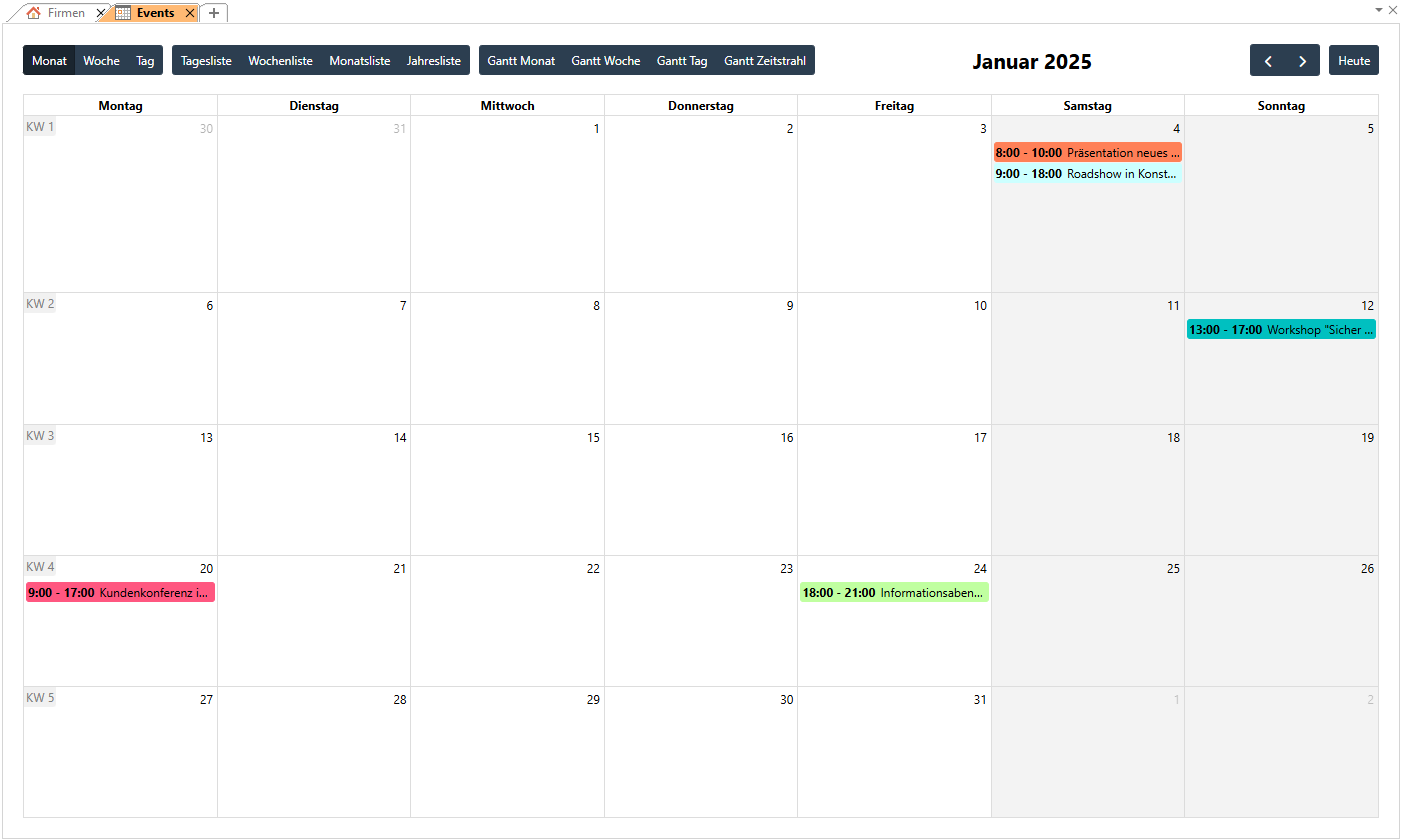 In der Web-Ansicht haben Sie die Möglichkeit Internetseiten (z. B. vom aktuellen Datensatz) oder HTML-Seiten anzuzeigen (z. B. einen Kalender). Sie können für jede Ansicht eine eigene Seite definieren.