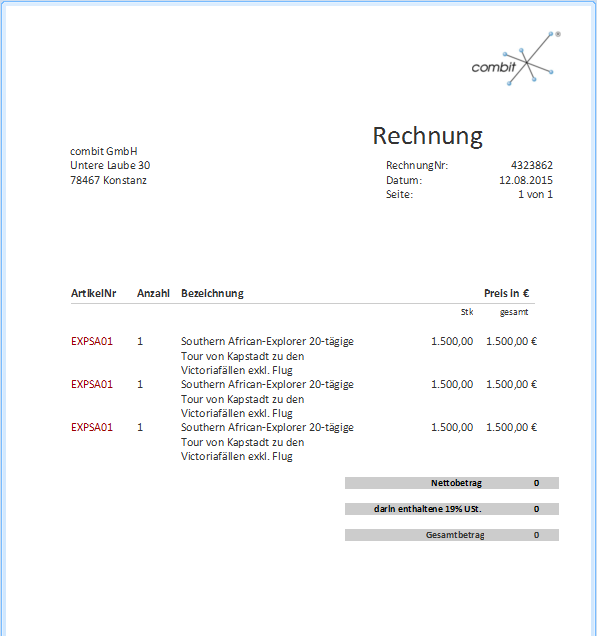 Nutzen Sie die Fülle von Formatierungsmöglichkeiten um die Rechnung in der gewünschten Form zu präsentieren. Ändern Sie z. B. die Spaltentitel und formatieren Sie die Beträge als Währung.