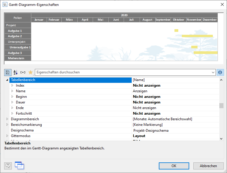 Abbildung 6.59: Eigenschaften des Gantt-Diagramms