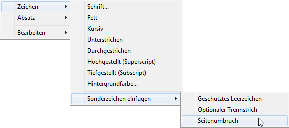 Über ein Kontextmenü stehen Ihnen diverse Formatierungsmöglichkeiten (z. B. Hochgestellt, Tiefgestellt, Optionaler Trennstrich) zur Verfügung. Über die Funktion PageBreak$() können Sie einen Seitenumbruch forcieren.