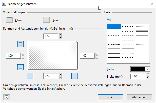 Abbildung 2.51: Rahmeneigenschaften
