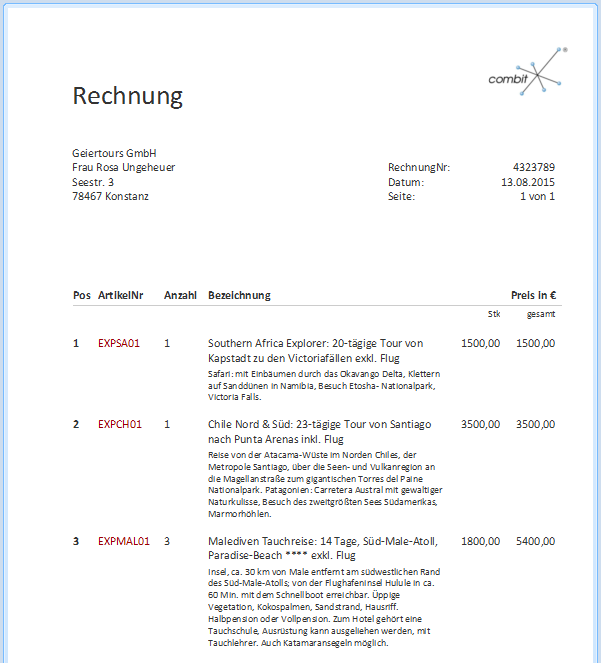 9. Die Rechnung sieht nun in der Vorschau ungefähr so aus: