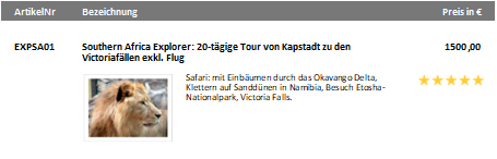 Für jeden Zeilentyp können verschiedene Layouts definiert werden. In Abhängigkeit von Darstellungsbedingungen wird je nach Situation das jeweils passende Layout verwendet. Auf diese Weise können z. B. 2 Tabellenzeilen pro Datensatz ausgegeben werden: