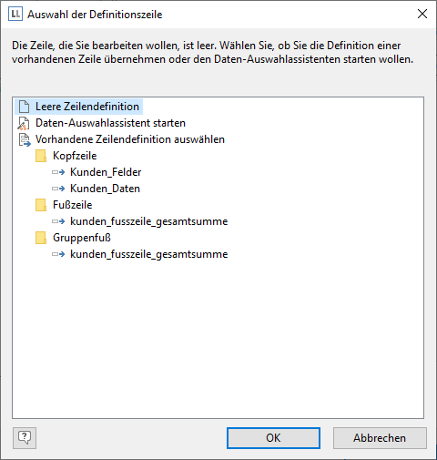 3. Im folgenden Dialog "Auswahl der Definitionszeile" können Sie nun entweder
