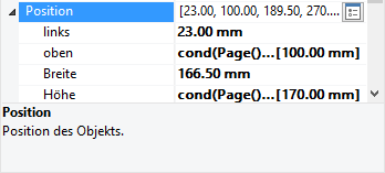 3. Selektieren Sie die Objekt-Eigenschaft "Position.Höhe" und setzen Sie die Bedingung Cond(Page()=1,170,220)