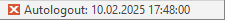 Betroffene Benutzer erhalten zusätzlich in der Statuszeile eine Information über den Zeitpunkt an dem sie vom System automatisch abgemeldet werden. Diese Information wird auch für den Benutzer "Administrator" angezeigt. Der Administrator wird niemals abgemeldet, hat somit jedoch die Information wann eine etwaige Abmeldung stattfinden wird bzw. im Zuge des Wartungsmodus stattgefunden hat.