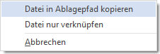 Wenn Sie Dateien mit der rechten Maustaste in einen Container ziehen, können Sie über ein Kontextmenü entscheiden, ob die Datei kopiert oder verknüpft werden soll.