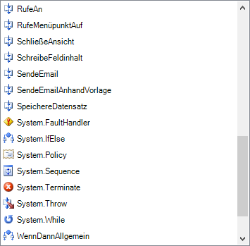 Die System.*-Aktivitäten sind microsoftspezifische Aktivitäten. . Weitere Informationen siehe Abschnitt Systemaktivitäten.