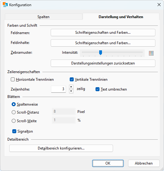 ▪ Über Schaltfläche "Darstellungseigenschaften zurücksetzen" können Sie alle Schrift- und Farbeinstellungen der Zeilen auf den Windows-Standard zurücksetzen.