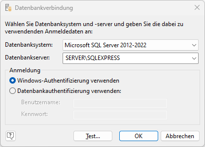 ▪ Bei Verwendung der Windows-Authentifizierung (nur bei Microsoft SQL Server verfügbar) muss der jeweilige Windows-Benutzer im Microsoft SQL Server eingerichtet sein.