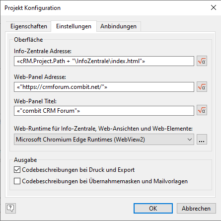 Hinweis: Die Web-Inhalte in der Info-Zentrale sowie allen Web-Ansichten und Web-Elementen müssen einheitlich zur ausgewählten Web-Runtime passen. Das bedeutet, dass für die Microsoft Chromium Edge Runtimes zwingend JavaScript als Scriptsprache verwendet werden muss, ursprünglich für das Microsoft Internet Explorer Control geschriebene VB-Scripte funktionieren damit nicht. Das Microsoft Internet Explorer Control läuft intern im Kompatibilitätsmodus, wodurch es Unterschiede/Einschränkungen insbesondere bei der Darstellung von CSS im Vergleich zum eigenständigen Internet Explorer geben kann.