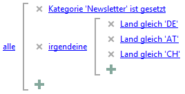 Beispiel: Kategorie="Newsletter" und (Land = "DE" oder Land = "AT" oder Land = "CH")