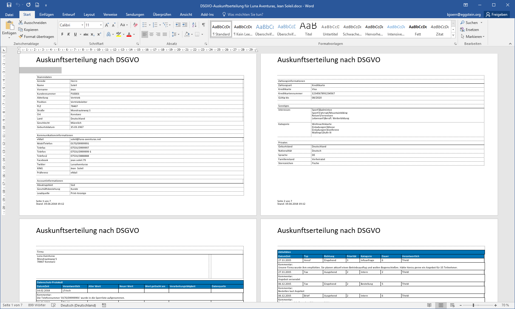 Auskunftserteilung nach DSGVO als Word-Dokument: