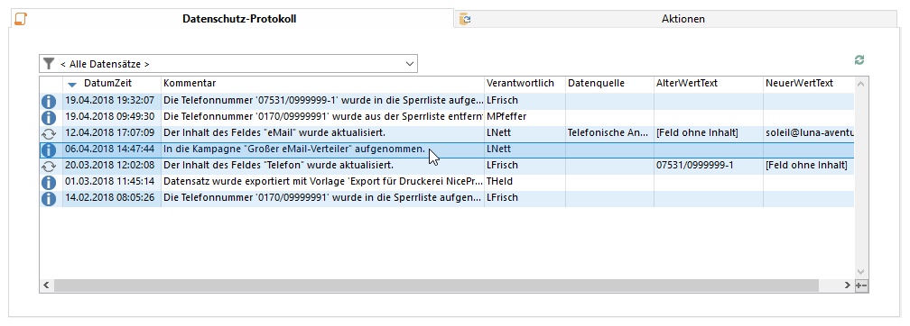 Als "Nachweis" im Hinblick auf den Datenschutz hinterlegen Sie ganz einfach einige dieser Aktivitäten, die Sie routinemäßig erfassen, zusätzlich, um hinterher folgendes schlüssig belegen zu können: