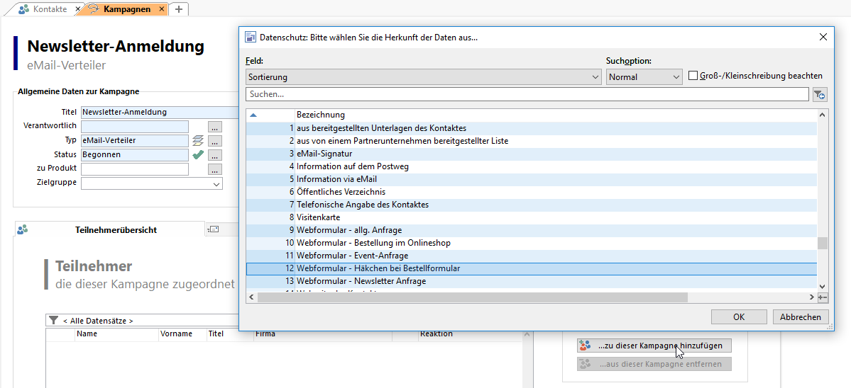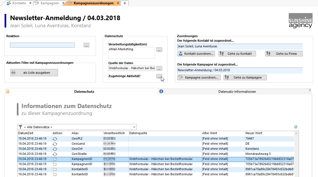 Nachvollziehbarkeit bei der Aufnahme in Verteilerlisten/Kampagnen:
