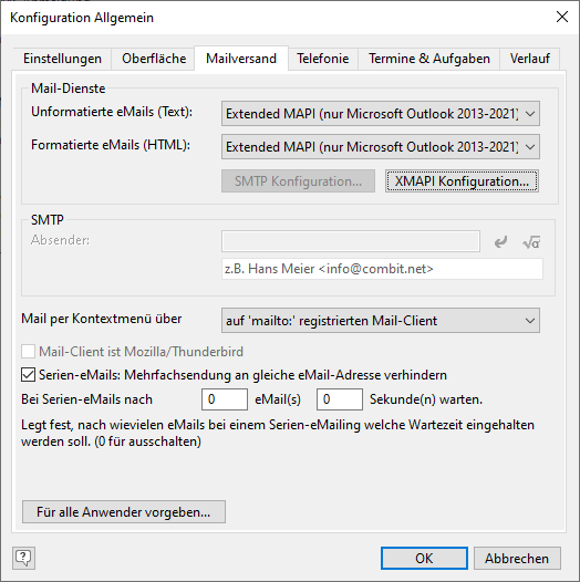 Um den direkten Mailversand nutzen zu können, müssen Sie vorab die entsprechenden Einstellungen vornehmen. Diese Einstellungen gelten auch für den Mailversand über den Export-, Druck- und Vorschaudialog.