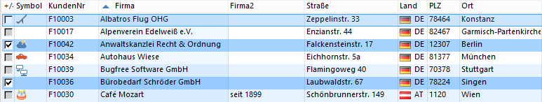 ▪ Wählen Sie über die Checkboxen oder Filtern > Datensatz einbeziehen / Datensatz ausschließen / Alle ausschließen / Alle einbeziehen diejenigen Datensätze aus, die explizit in den Filter einbezogen oder ausgeschlossen werden sollen. Diese Checkbox kennt für die Kennzeichnung der Datensätze drei verschiedene Zustände: