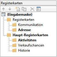 Sowohl die Eingabemaske als auch die Haupt-Registerkarten können mehrere Registerkarten enthalten. Somit können Daten noch übersichtlicher angeordnet werden.