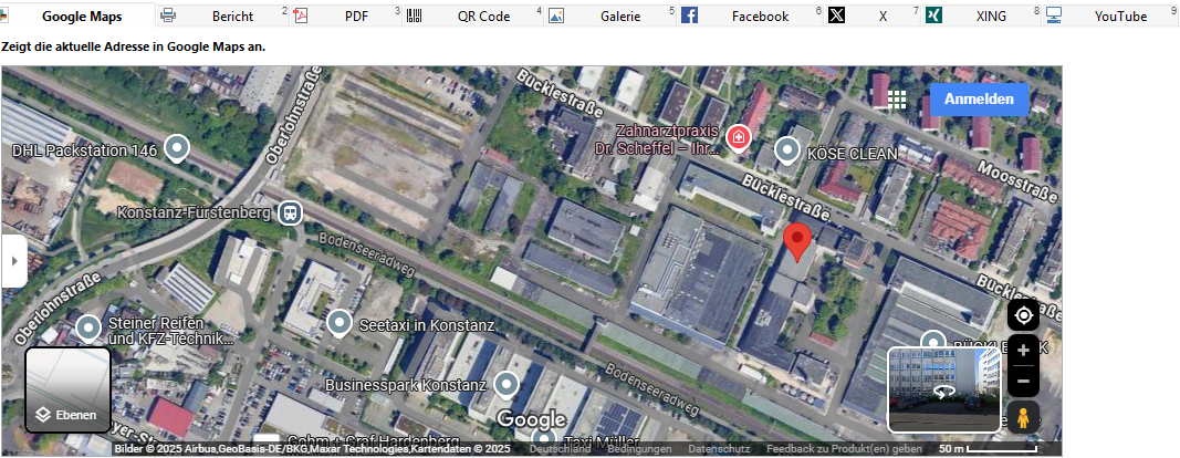 ▪ "URL": Die URL der anzuzeigenden Webseite oder HTML-Datei. Diese lässt sich auch per Formel dynamisch z. B. in Abhängigkeit von Datensatz oder Benutzer gestalten.
