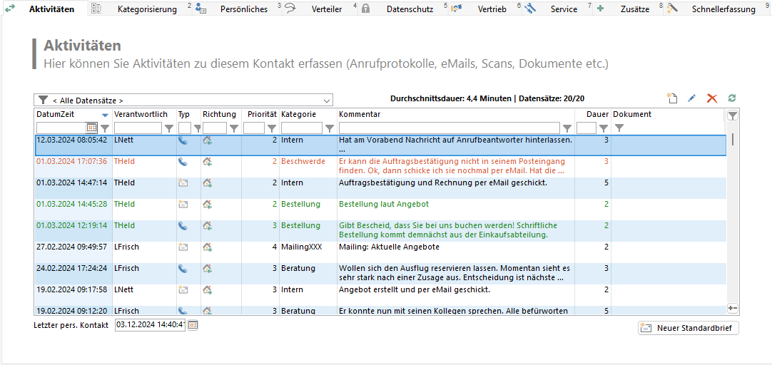 Bitte beachten: Wenn die Liste nach diesem geänderten Feld sortiert ist, erfolgt keine automatische Umsortierung des Datensatzes.