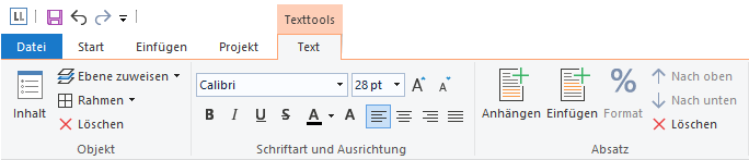 4. Ein Textobjekt kann beliebig viele Absätze enthalten, die jeweils ganz unterschiedliche Darstellungseigenschaften haben können. Über die Texttools (Mini-Symbolleiste) können weitere Absätze eingefügt werden. Wählen Sie "Anhängen" (Absatz anhängen) um einen weiteren Absatz zu definieren.