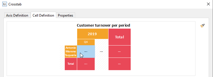 In crosstabs, you can also select individual cells. Open the properties of the crosstab and go to the "Cell Definition" tab.