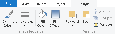 If you insert a drawing object, the Drawing Tools and the tab "Design" are displayed. The tab contains the commands you need for working with drawing objects (e.g. Outline color, Lineweight).