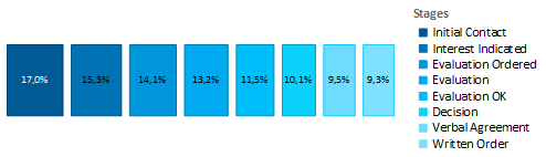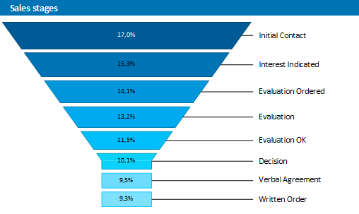 With a funnel or a pipeline, you can e.g. display your sales processes in the various phases. There are a variety of options for the way the data is presented.