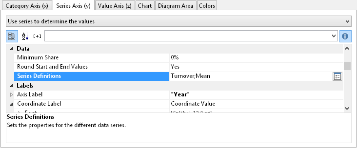 4. Now define the coordinate value of the series axis. Use the combo box above the property list to select the entry "Use series to determine the values".