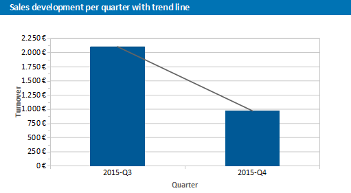 You can mix bar charts with line charts. In addition to the ability to display another data series as a line at the same time as the bar chart, you may also make use of the calculation options such as moving averages and aggregation options. This will allow you to see total turnover, trends in the data, or outliers (both upwards and downwards) at a glance.