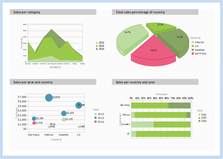 With complex projects containing many different charts, it may be a good idea to present them over several columns.