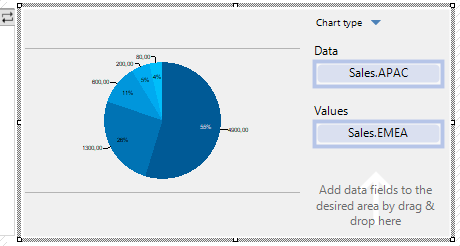 ▪ If you drag more than 2 fields into an empty area or into an existing report container, a new table or chart is created. You select the desired object via a dialog. For charts, a dialog then opens for further configuration of the chart.