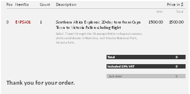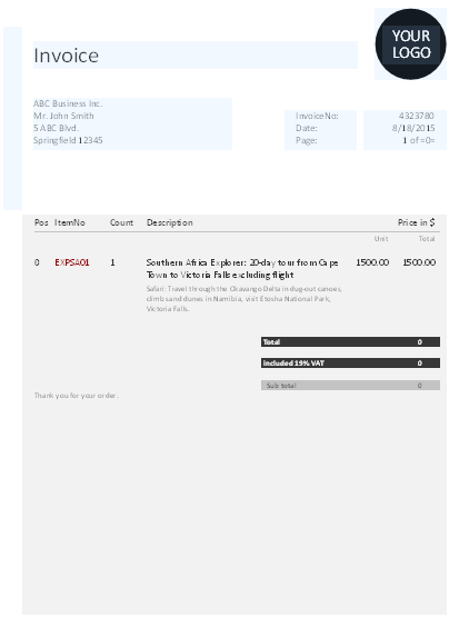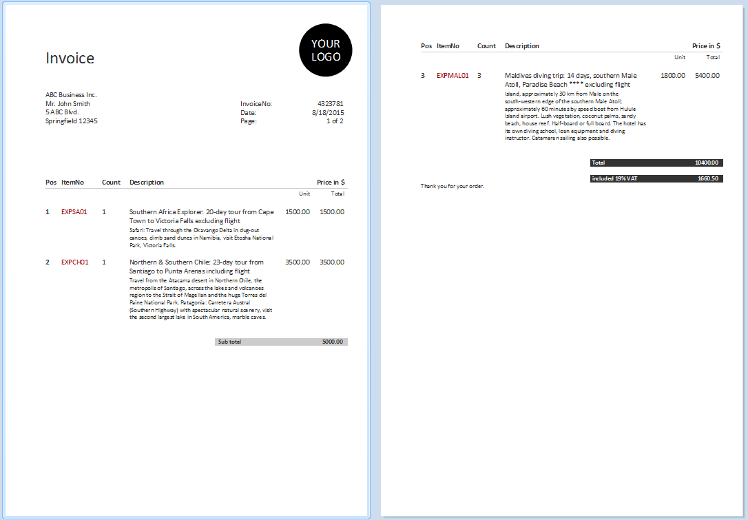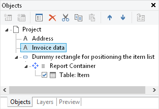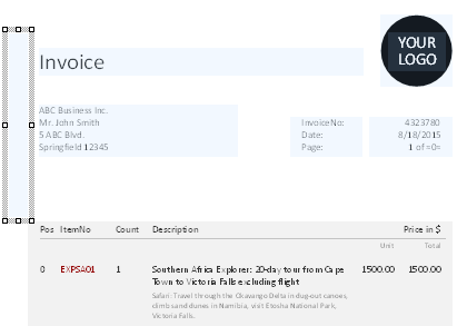 2. The upper edge of the object is positioned precisely where the invoice table is to begin on the following pages. The lower edge is positioned precisely where the invoice table is to begin on the first page.
