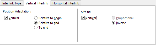 6. On the "Vertical Interlink" tab, choose the position option "Relative to end" and the size option "Inverse".