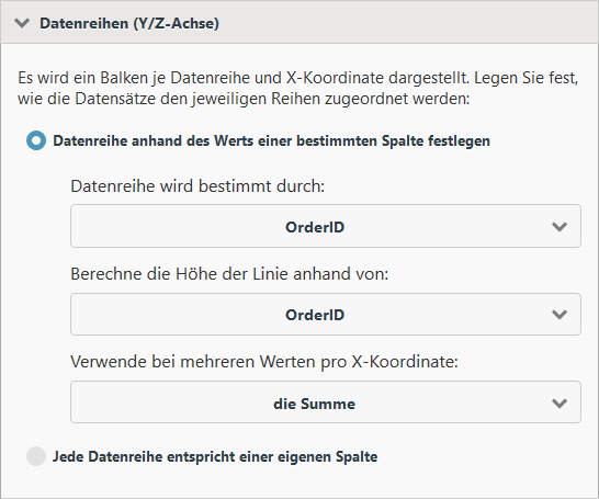 Es wird eine Linie/Teilfläche je Datenreihe bzw. ein Balken je Datenreihe und X-Koordinate dargestellt. Legen Sie fest, wie die Datensätze den jeweiligen Reihen zugeordnet werden: