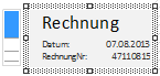 Um einen Rechnungskopf mit dem Text "Rechnung", dem Rechnungsdatum und der Rechnungsnummer einzufügen verwenden Sie erneut das Textobjekt.