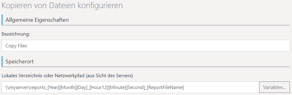 Abbildung 2.31: Schaltfläche "Variablen" beim Speicherort für "Dateien kopieren"