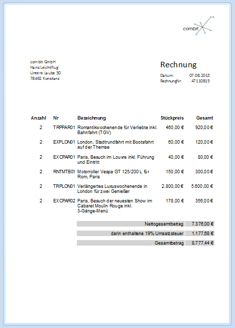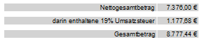 6. Damit sind die Fußzeilen definiert und die Rechnung sieht so aus: